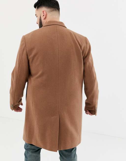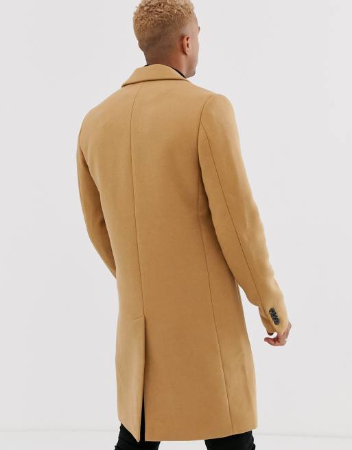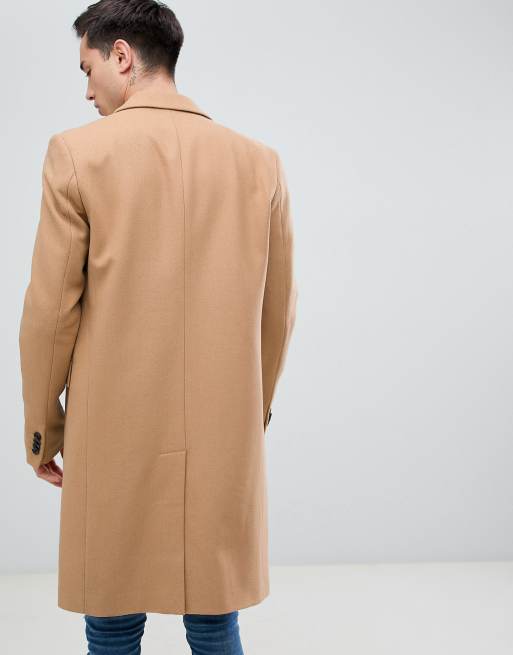 Find the best selection of asos design wool mix overcoat in camel.